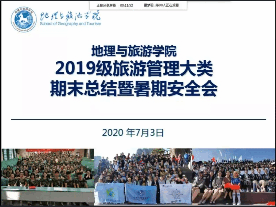 )大一学年接近尾声,同学们即将迎来大学生活的第一个暑期。为让同学们拥有一个安全,充实的暑假,2019级旅游管理类专业于7月3日晚上7点以线上的形式举行了2019级旅游管理类专业“期末总结暨暑期安全会”主题班会。参加本次班会的有2019级旅游管理专业全体同学和辅导员徐倩老师。