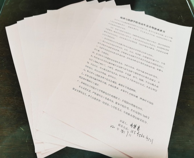 电动车安全驾驶承诺书》,确保其自觉遵守交通规则。