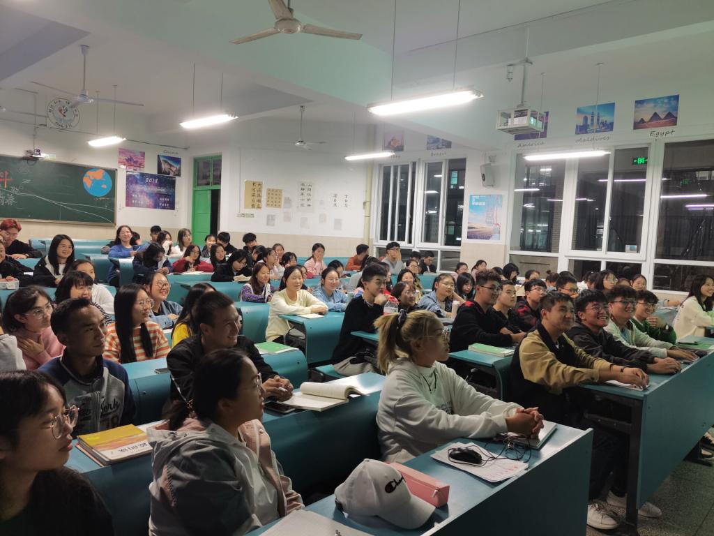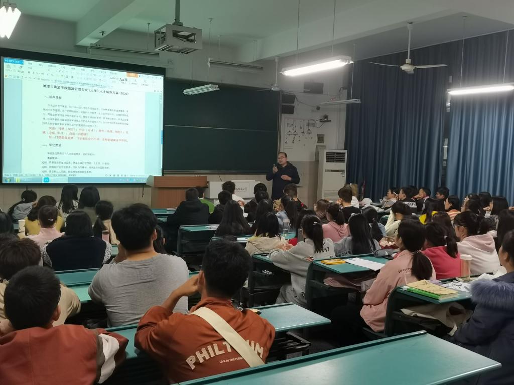 旅游专业负责人杨钊教授,在花津校区行知楼2040203教室为2020级旅游管理专业新生就《女同做爱