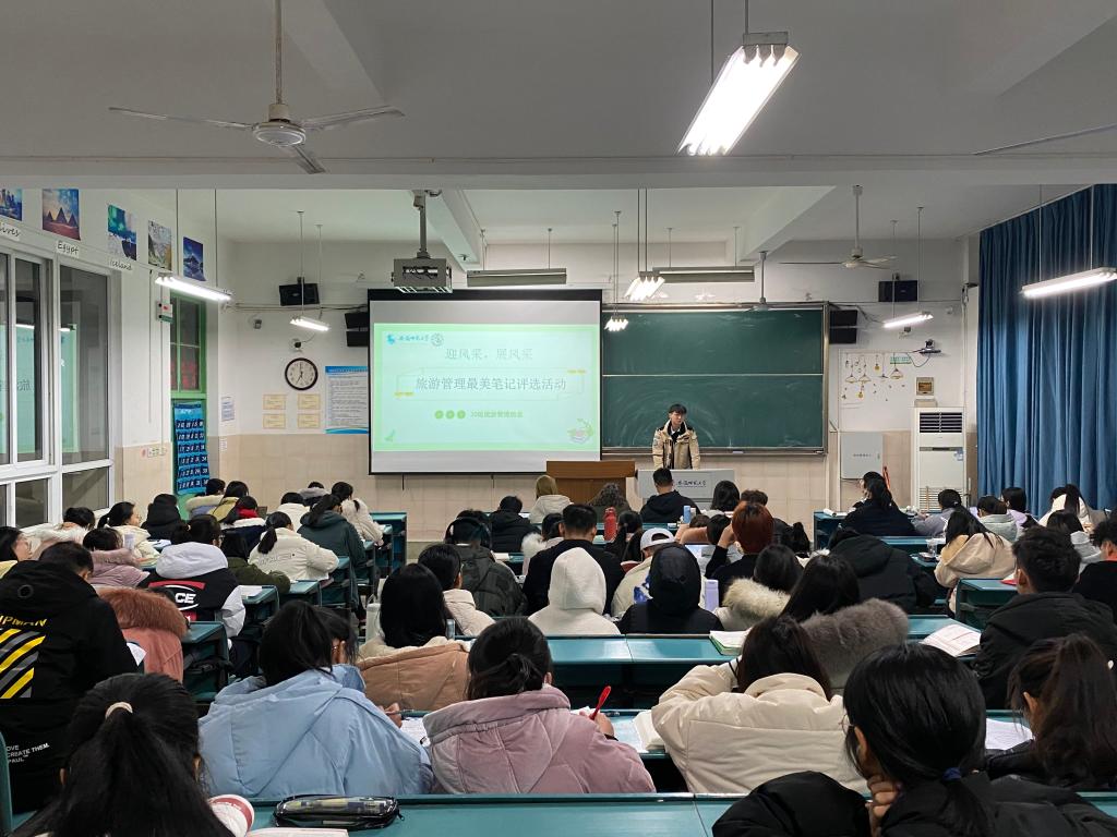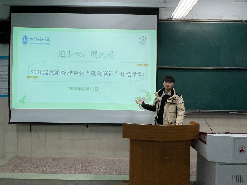 邹瑾璇 吴思慧)“笔”墨生香,独家“记”忆。迎期末,展风采,为营造良好的期末备考氛围,为即将到来的期末考试做准备,建设班级学风,展现班级风采。12月17日晚, 2020级旅游管理班委会在4号教学楼203教室组织开展“2020级旅游管理专业第一届最美笔记”评选活动。此次活动由二班学习委员张乃豪主持,在2020级旅游管理专业全体班委的精心组织和全体同学的积极参与下圆满完成。