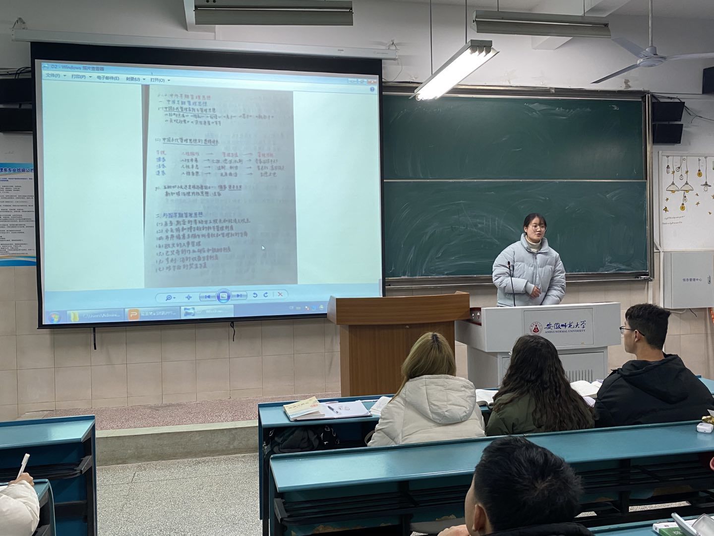活动中五名参赛选手叶丽亚、徐菁、徐雨菲、孙云峰、张乃豪依次展示了自己英语、管理学、高数等课程的笔记。叶丽亚在笔记中给自己设问帮助理解笔记内容;徐菁把重点用图形或彩色笔标注;徐雨菲将重点划线并在英语笔记采取左中右英的方式帮助记忆;孙云峰做思维导图帮助逻辑记忆;张乃豪整理笔记框架。简洁工整、重点突出的知识点梳理,思路明确、环环相扣的思维导图,绘制精美、标注清晰的图文说明,这些对学习和理解记忆十分有帮助的方法让同学们懂得了如何做好笔记。此外同学们也领悟到了五位同学认真对待课程内容和上课认真仔细的精神,同学们都有所触动并表示会将其作为榜样。通过此次活动,同学们学习到许多归纳总结笔记的方法,为今后的学习奠定了良好的基础。笔记的分享使学生中营造了浓厚的学习氛围。