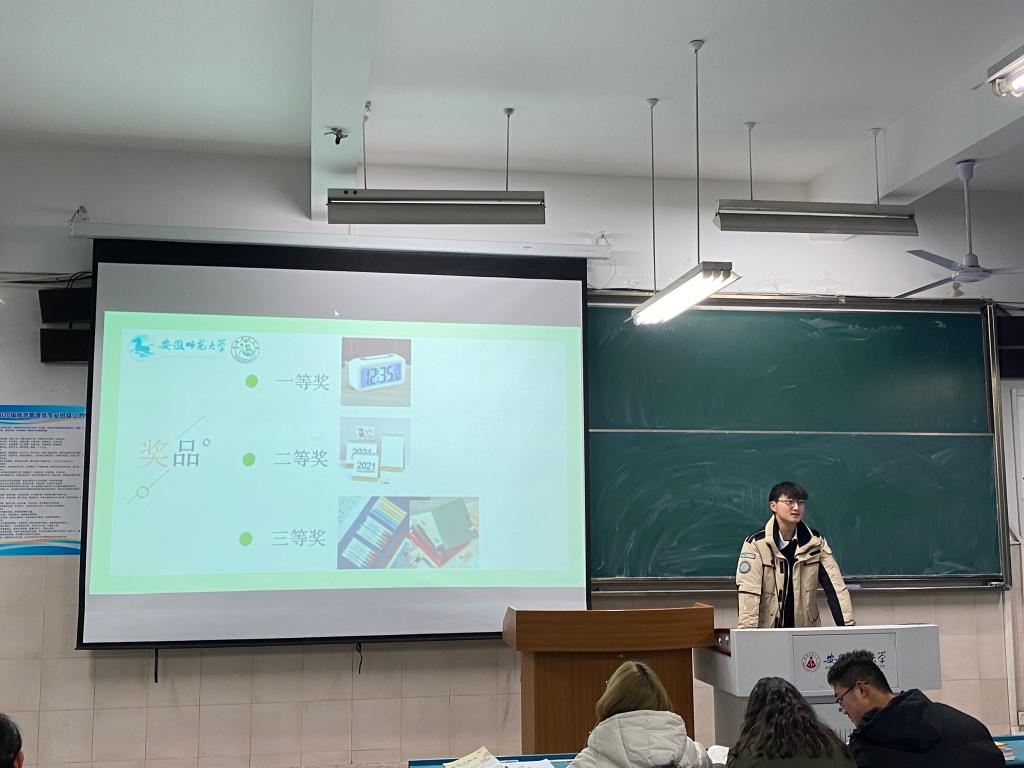 活动伊始,张乃豪介绍活动背景及相应规则和对应奖励,就16日班委初步评选参赛笔记的活动流程及情况进行公示说明,最终由班委打分选出五名选手代表参赛。活动依据笔记内容、字迹、选手现场表现等方面对五名选手进行总体测评,由全体同学选出三位自己心目中“最美笔记”。其次,参与活动的方式还包括在社交平台如QQ空间、朋友圈或其他平台上晒出自己喜欢的笔记,在各平台集赞数前三者可获得同样精美礼品,12月20日将揭晓比赛结果并颁发奖品。