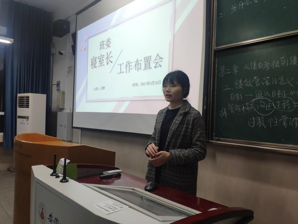 随后,张慧针对班级寝室长及班委的工作提出了几点要求。对于寝室长,她强调了每日健康打卡、测温登记、晚点名和寝室卫生安全的重要性;对于班委,则回顾了上次班委会布置的工作,并号召各班委以身作则,协调工作,共同开展班级各类活动,创建卫生文明班级。