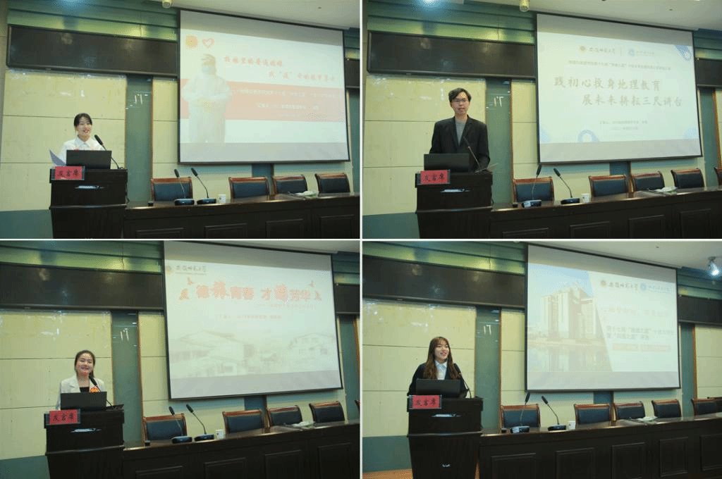 2018级土地资源管理王睿涵跟随榜样,努力奋斗,获得全国大学生自然科技作品大赛、全国大学生土地国情调查大赛三等奖;2018级旅游管理专业的高昕茹聚焦乡村旅游业的发展,助力乡村振兴;2017级旅游管理的朱阔阔勤学慎思,奉献友爱;2018级酒店管理的董倩倩脚踏实地,期望未来,坚持勤工助学,自立自强;2018级地理信息科学专业的丁雅欣积极入党,立鸿鹄志,做奋斗者,获得全国大学生GIS应用技能大赛特等奖;2019级地理信息科学专业的褚超群提高个人能力,踏踏实实筑好根基;2018级土地资源管理专业的孔学融连续两年专业排名第一,获全国大学生英语竞赛国家级特等奖;2017级地理科学专业的朱侃践初心投身地理教育,展未来耕耘三尺讲台;2018级城乡规划专业的潘爽立足专业,厚积薄发,获得全国高等院校大学生乡村规划方案竞赛省级三等奖、全国优胜奖;2019级旅游管理专业的鲍格格坚定理想信念,一心钻研,拼搏向前……他们分别从学习、工作、实践、生活、志愿服务等方面,讲述了他们在师大成长的故事,充分体现了地旅学子奋发向上、朝气蓬勃的精神样貌以及顽强拼搏的意志,为同学们树立了优秀榜样。