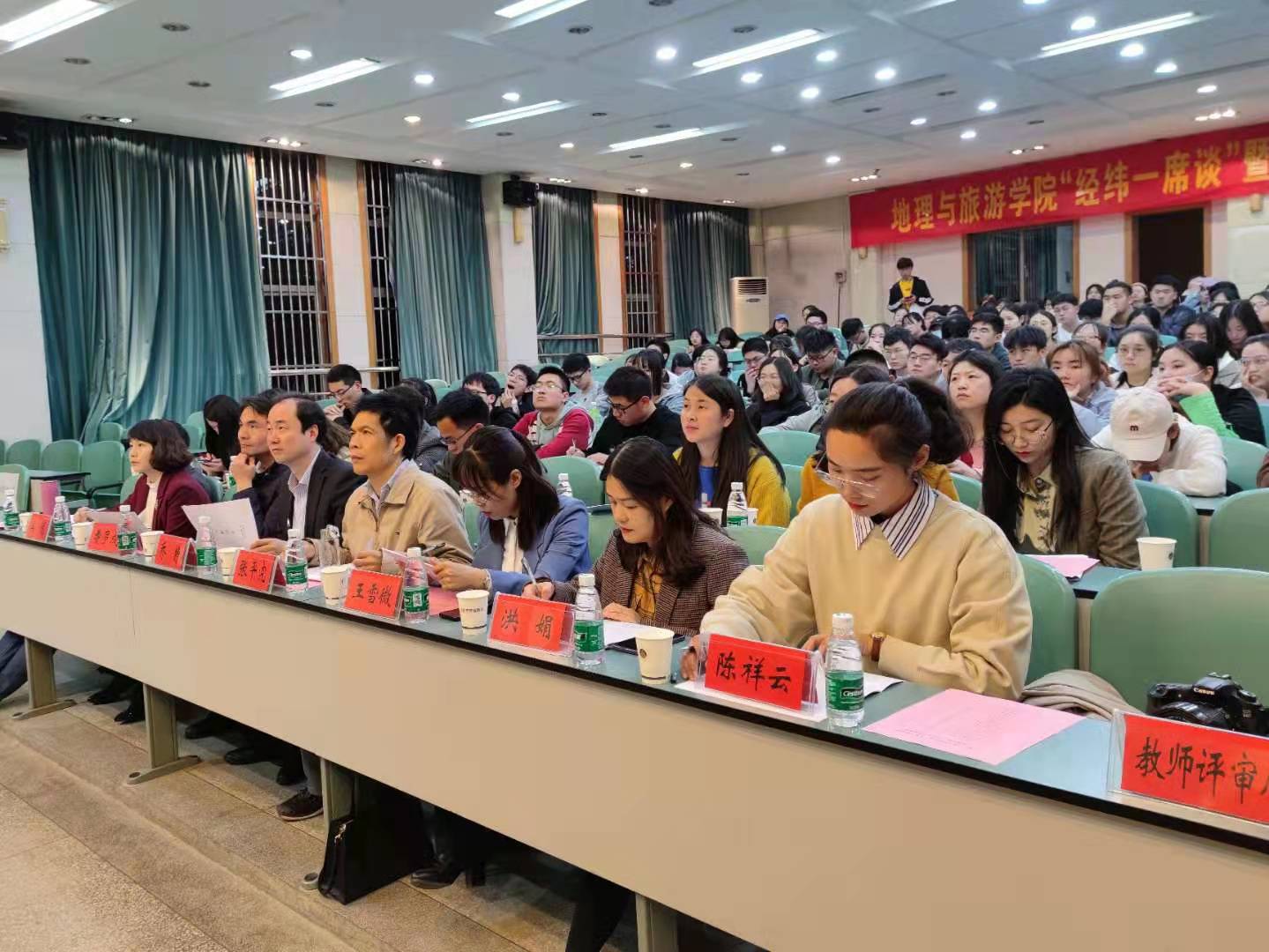 党委副书记乔静,地理科学专业教授张平究,土地资源管理专业负责人费罗成,城乡规划专业副主任王雪微,酒店管理专业教师吴悦,旅游管理专业教师洪娟,地理信息科学专业教师姜伟,地旅女同做爱