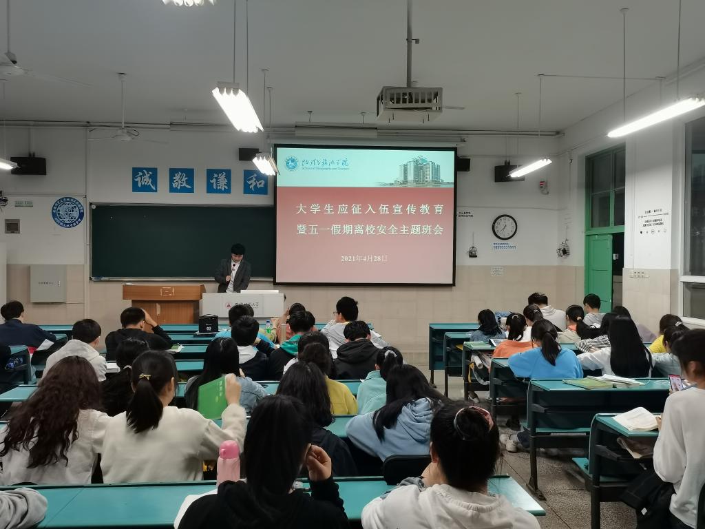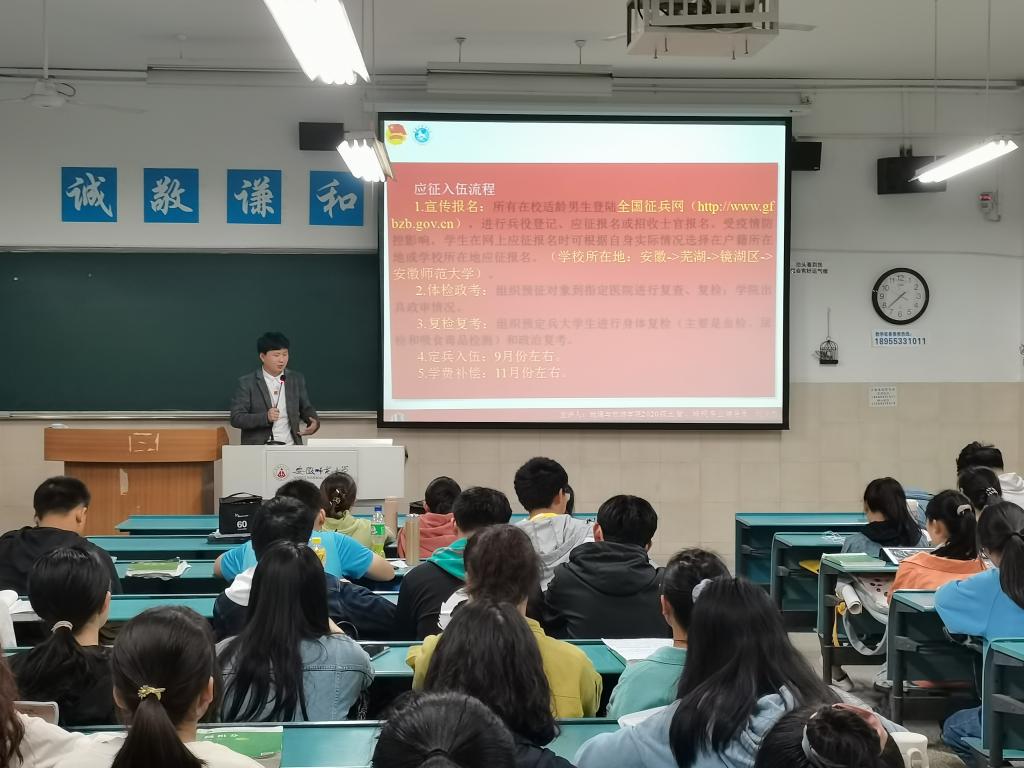 历来高度重视大学生征兵工作,通过班级召开主题班会等形式,扎实推进学生国防理论教育、大学生应征入伍宣传,将理论学习与社会实践相结合,对学生进行全方位培养锻炼,坚定理想信念,不断发挥引领全院学生成长成才的先锋模范作用。