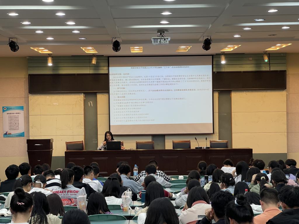 实验楼101教室召开暑期社会实践动员会,会议由地理科学类四班团支书张曼其主持,地理科学类、拔尖班全体同学参会。