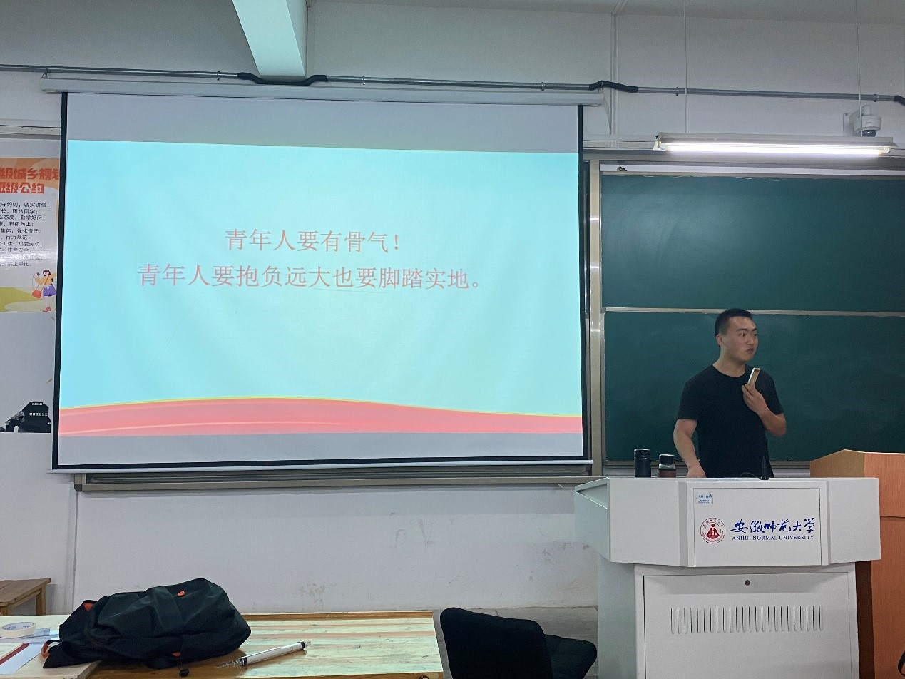 首先,王令帅从城乡规划专业未来发展角度入手,谈及党的政策与我们的专业、我们的生活息息相关。因此了解党史国情、学习党的方针政策也是我们需要具备的一项重要的专业素养。接着,王令帅谈到“寻找初心、坚定信仰”。我们党从当年五十人左右,发展到如今拥有九千万党员的大党,人数在增加,力量在增强。在“两个一百年”交汇之际提出学习党史,就是为了寻找初心,重温早期共产党人的信仰与坚守。同学们现在仍或多或少对未来感到迷茫,通过学习党史,我们可以从中汲取精神力量,认识到我们所处时代面临的机遇与挑战,意识到作为新时代青年我们所担负的责任,强化担当意识,以把握人生方向。最后,通过播放近年中国面临的国际争端的两则短片,同学们清晰认识到我们所处的时代仍存在各种风险的,中华民族的伟大复兴需要我们每个人不断奋斗。我们感受到的岁月静好,是一批又一批走在国际前线的共产党人和军人们为我们争取来的。王令帅说:“青年人要有骨气!要抱负远大,也要脚踏实地,走好每一步路。”