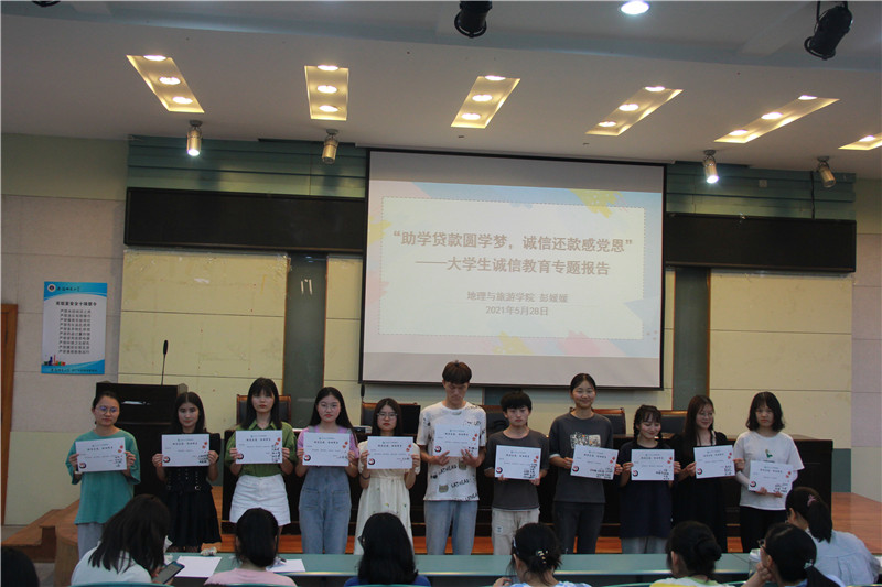 向所有申请过助学贷款的学生发放《致办理生源地助学贷款毕业生的一封信》并组织签署《安徽师范大学学生资助诚信教育承诺书》等等。资助诚信教育系列活动引导学生把正确的诚信认知、自觉的诚信养成、积极的诚信实践紧密结合起来,进一步提高了大学生“知党恩,感党恩”的思想自觉和行动自觉。