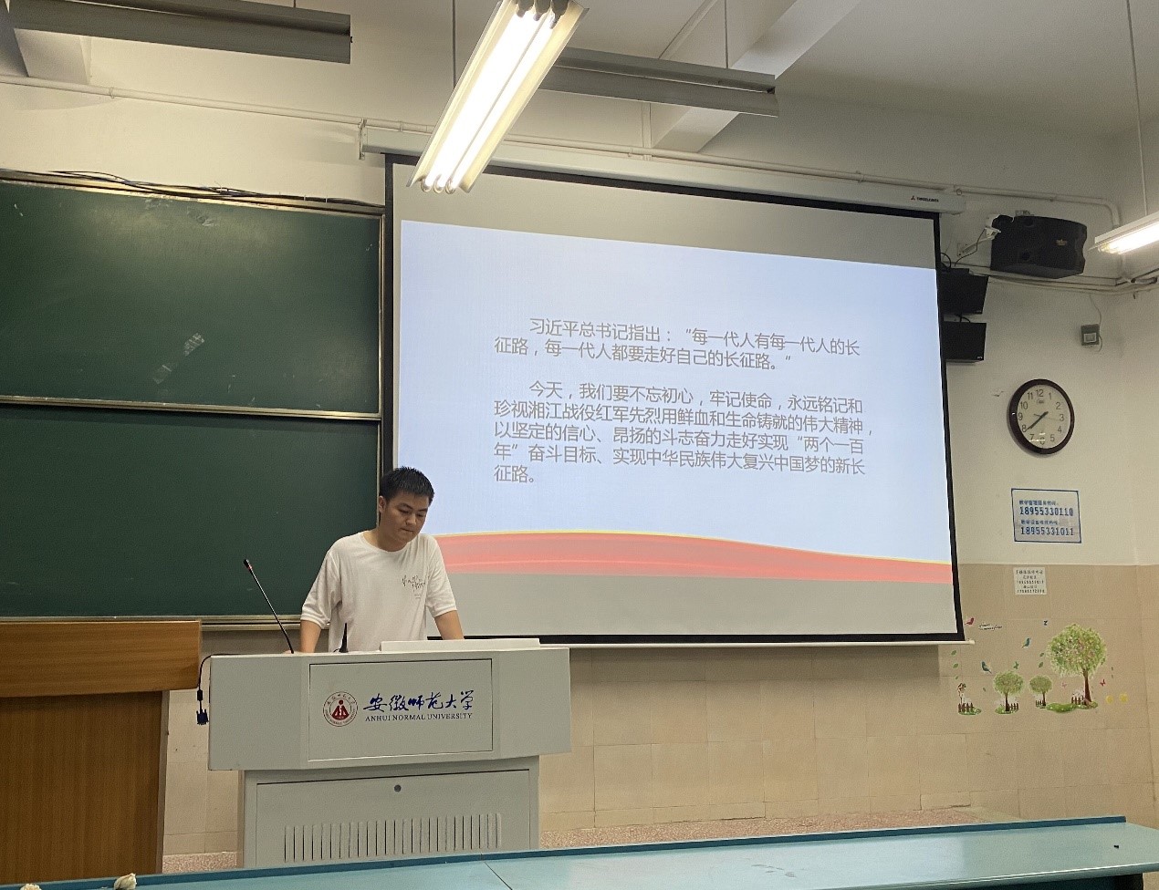 刘少杰 耿艺榕)为全面贯彻落实习近平总书记在党史学习教育动员大会上的重要讲话,积极响应“学史明理、学史增信、学史崇德、学史力行”的号召,推动“学党史、强信念、跟党走”学习教育持续深化,强化爱国主义教育。6月16日晚七点半,2020级城乡规划班“青春心向党 党史我来讲”党史宣讲主题活动第六讲开讲。本次主讲人为入党积极分子王宏志,主题为《湘江血战》。