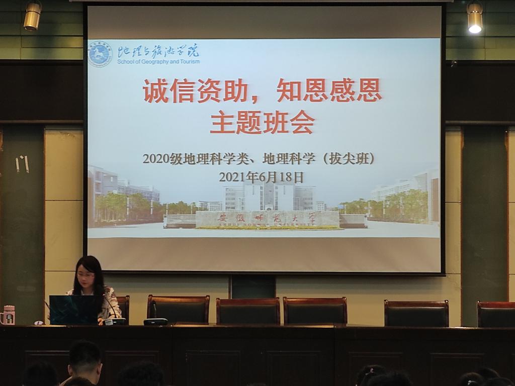 邵宇萌 彭媛媛)为进一步加大学生资助政策宣传力度,充分发挥资助育人功能,并提高学生的感恩意识、诚信意识和金融风险防范意识,2020级地理科学类、地理科学(拔尖班)于2021年6月18日下午在女同做爱