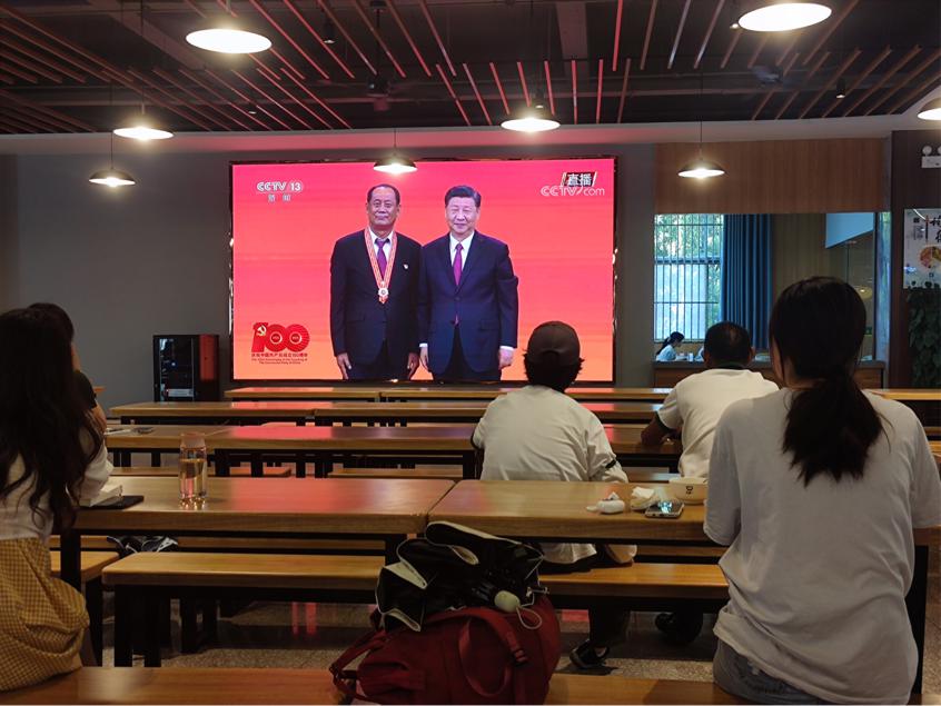 7月1日上午8时,2018级地理科学(师范)专业全体党员聚集在一起,观看在北京天安门广场隆重举行的庆祝中国共产党成立100周年大会直播。