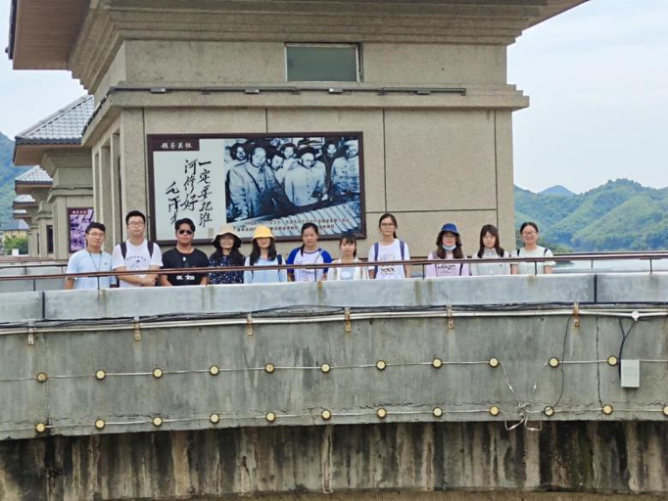 到达金寨后,实践调研团队乘坐大巴去往梅山水库。梅山水库坐落在史河上游梅山城区,是流域重点工程,是由我国自行设计自行施工的当时世界上最高的连拱坝,坝高88.24米,全长443.5米。大坝雄伟壮观,气势磅礴,犹如长虹卧波横跨在高峡平湖之中。梅山水库是具有防洪、、发电、航运与水产养殖等综合利用功能的大型水利枢纽工程。此外,由于水库的修建,人工湖随之形成。库区湖光山色,林壑尤美,醇厚的民风、秀丽的景色和美好的传说,吸引着无数中外游客前来观光游览。梅山水库景区丰富的"绿色"旅游资源同县域“红色”革命传统紧密相联,形成了自己独特的旅游文化。新中国成立后,淮河流域水灾严重,连年的洪水对当地百姓的生产生活产生了很大影响。当时就流传着这样一句话,“走千走万,不如走淮河两岸”,这也表明了当地百姓受到洪水的严重影响。这也受到了党中央的高度重视。在皖西流域修建了五座大坝,梅山大坝就是其中之一。调研团队在参观水库时,还看到了毛泽东主席曾说过的“一定要把淮河修好的”标语。不禁感叹重大水利工程对人民群众生命和财产安全的巨大作用,也表达了对水库建设者的崇敬之情。