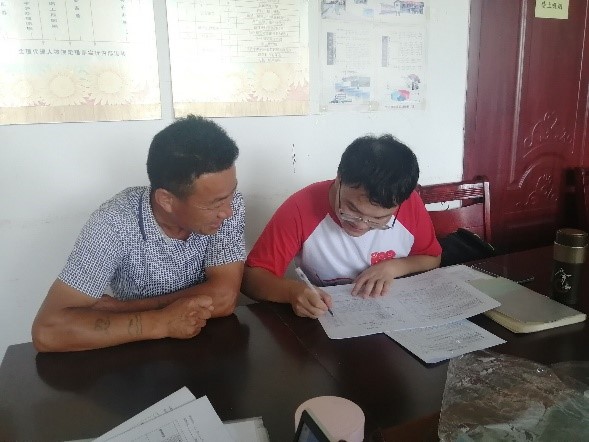 7月14日上午,团队成员通过对当地的种粮大户进行问卷调查和访谈,对当地气候智慧型农业的实施有了更加深刻的理解。国家和怀远县政府对种粮大户给予相应的补贴和农业技术指导。随着农业机械的大规模运用,以及高效施肥、秸秆还田、土地平整等措施的实施,农作物产量得到极大的提升,农民实现增收,生活水平也有所改善。大部分种粮大户都表示了对气候智慧型农业的认可。下午,团队成员来到陈安村进行实地调研,本次问卷调研的主体是陈安村的居民,主要针对个人散户。成员们到达村内的党群服务中心,在表明团队的来意后,村支书十分热情,主动帮助队员们联系村民。在与农民的交谈访问中,团队成员及时做好记录以及问卷的填写,农民在大户的影响下,也逐步使用高新技术的农业机械,农民生活水平得到极大的提高。