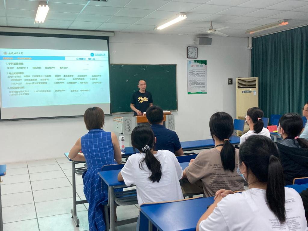 王丹妮)为做好新生专业思想教育,帮助同学们了解土地资源管理专业,9月14日晚,土地资源管理专业的多名教师代表分别从专业概况、专业课程设置、专业就业前景等多个方面深入浅出地对土地资源管理专业进行了详细介绍。讲座由土地资源管理专业副主任徐玉婷老师主持。