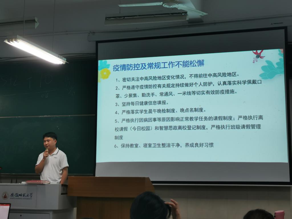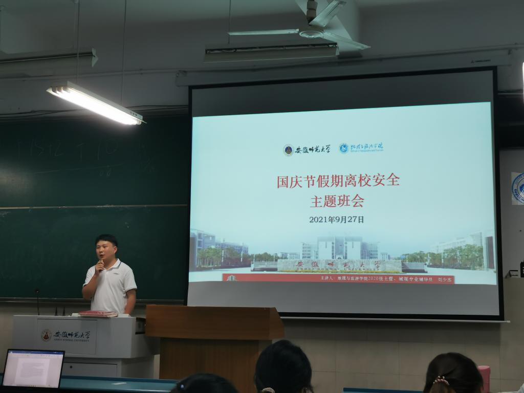 刘少杰 耿艺榕)为增强同学们的安全防范意识、提高防范化解安全事故能力,更好落实疫情防控各项工作,9月27日晚, 20级城乡规划和20级土地资源管理专业召开安全教育和疫情防控主题班会,会议由辅导员刘少杰,20级城乡规划和20级土地资源管理全体学生参与。