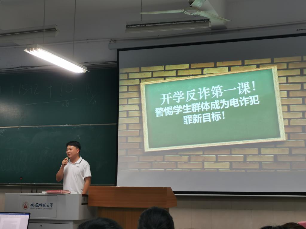 首先,刘少杰为同学们带来“反诈第一课”,给大家列举了让学生群体屡屡“中招”的诈骗类型和手段,提醒大家提高防范意识,发现诈骗行为要及时反映、举报,避免坠入诈骗的深渊。通过列举近年国内高校出现的真实案例,告诫大家时刻提高警惕,诈骗离我们并不遥远,同学们要及时下载“国家反诈中心”APP,提高防范能力。此外,刘少杰就心理健康安全、身体健康安全、宿舍卫生安全等向大家做重要提醒。