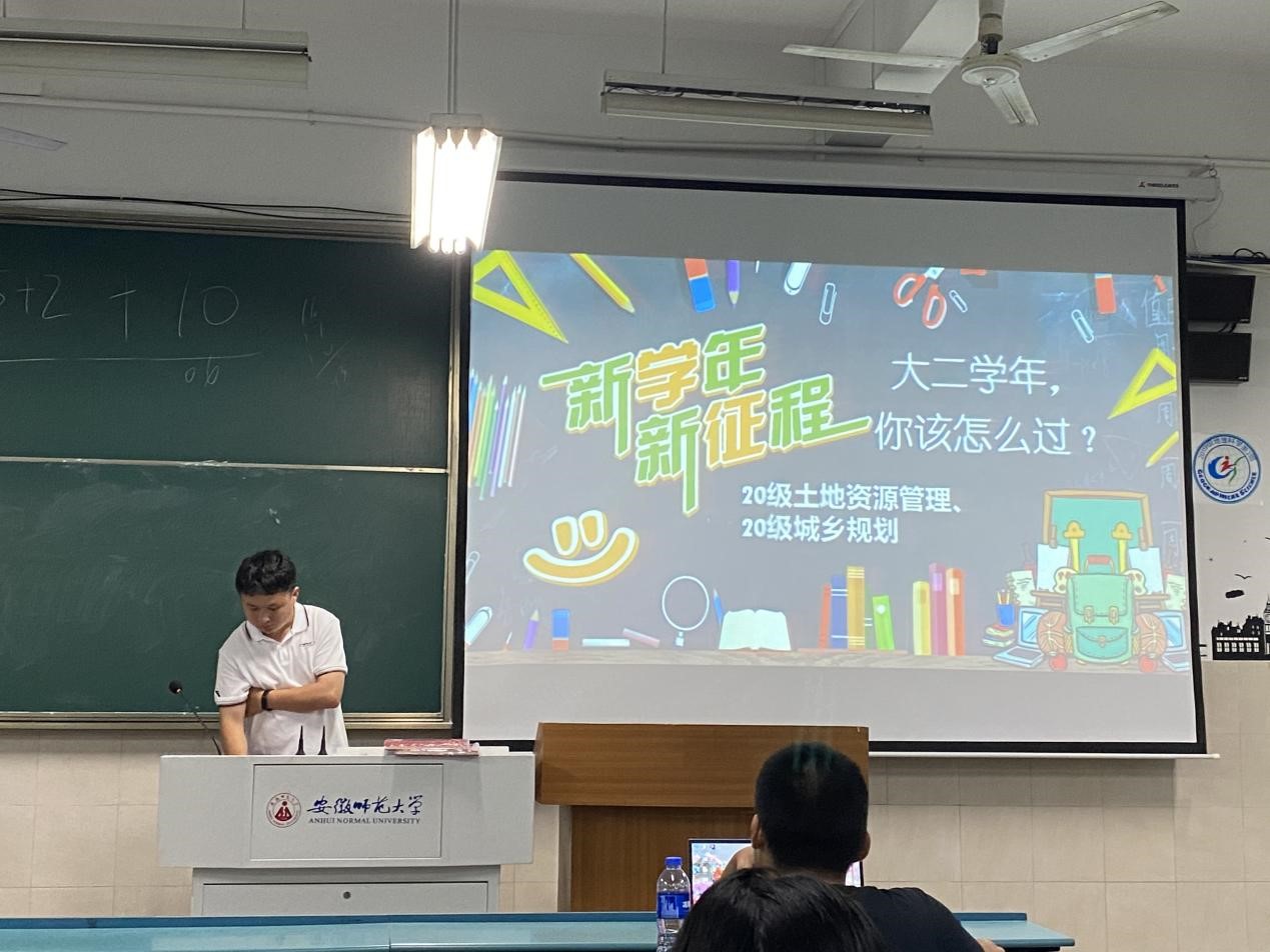 刘少杰 耿艺榕)为加强班级学风建设, 端正同学们的学习态度,引导学生尽快进入学习状态,9月27日晚,辅导员刘少杰给20级城乡规划和20级土地资源管理专业学生召开了一场主题为“大二学年,你该怎么过?”学业指导班会。