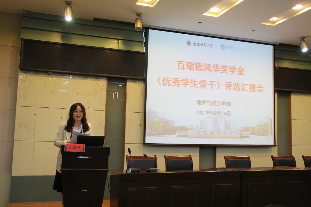 2002级校友程伟在母院设立的社会奖助学金“安徽师范大学百瑞德奖学金”,旨在支持教育事业发展,激励在读本科生勤奋学习、励志成才。其中,“百瑞德风华奖学金”用于奖励帮扶在党支部、团委、学生会、社团、班级等组织中担任学生干部,或在道德风尚、学术研究、学科竞赛、创新发明、社会实践、体育竞赛、文艺比赛等方面成绩特别突出的优秀学生,充分发挥学生骨干在地旅学子中的示范、引领作用,展现“地旅风华”。
