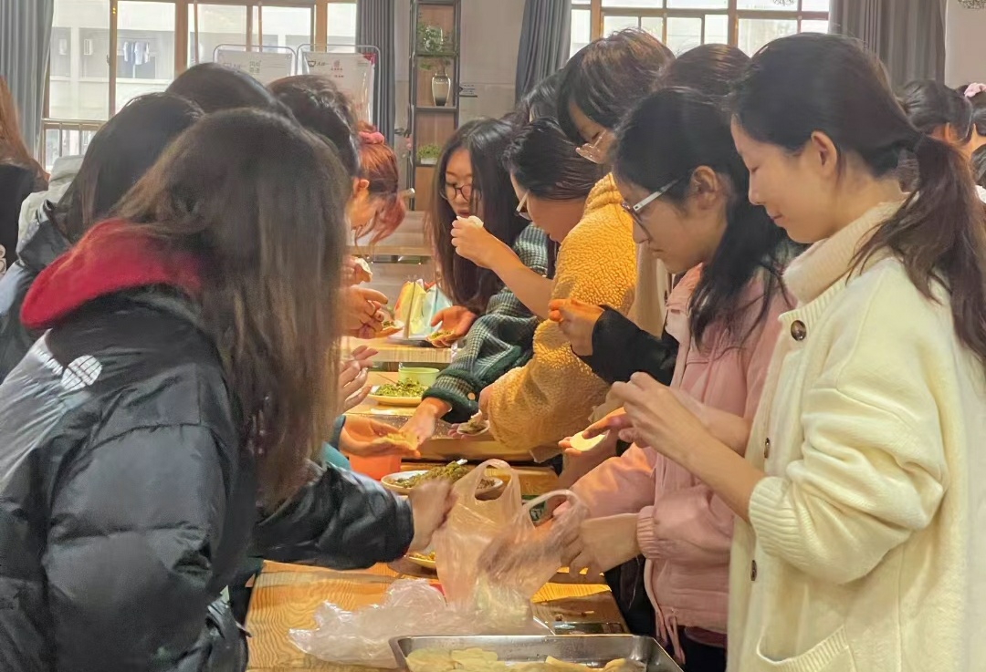 活动伊始,先是由班委组织大家进行手部清洁和消毒,确保包饺子过程中的安全卫生;紧接着,同学们自由组队,分成三支小队,在三张长桌上同时开始包饺子。作为中华民族传统美食,饺子承载着吉祥如意的美好意愿。在正式开始之后同学们各自都大显身手,有的同学熟练掌握包饺子技巧,短短时间就包出了外形美观,馅料饱满的“漂亮”饺子,也有同学充分发挥想象力和创造力,包出了奇形怪状、令人捧腹的“可爱”饺子,在欢愉的气氛中同学们一遍创作美食作品一边交流饺子文化与传统习俗,从开始的稍显稚嫩,到逐渐得心应手,同学们在不断尝试中掌握了包饺子的要领。终于在大家的齐心协力下,伴随着升腾的热气,同学们亲手制作的饺子也新鲜出炉,大家都排排坐等待品尝自己的劳动成果。辅导员赵佳慧说,希望同学们通过这次包饺子的活动,充分体会到劳动的不易,做到珍惜粮食;同时希望大家可以通过丰富多彩的活动加强交流,增进情感。