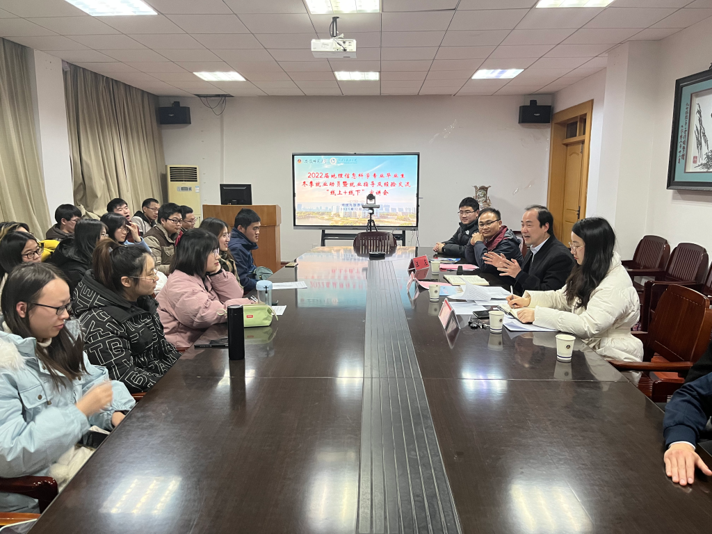 2022届地理信息科学专业于2021年12月28日晚在院行政楼三楼会议室开展毕业生冬季就业动员暨就业指导及经验交流“线上+线下”宣讲会,会议由地理信息科学专业主任汪左主持,女同做爱