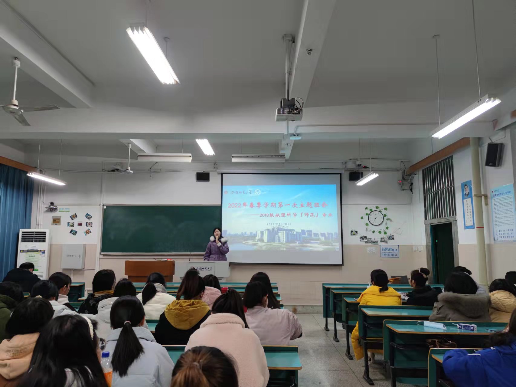 丁茹栩 尹仟仟)关注毕业班最后一学期,合理规划学习生活。2月20日,2018级地理科学(师范)专业在教学楼2040404教室召开2022年春季学期第一次主题班会。2018级地理科学(师范)专业全体在校学生参与本次会议,班会由辅导员丁茹栩主持。
