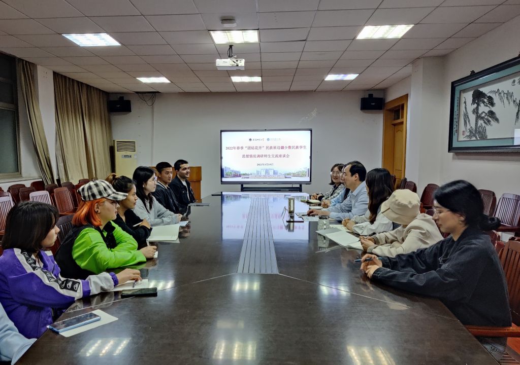 在院行政楼三楼会议室召开2022年春季“团结花开”民族班边疆少数民族学生思想情况调研师生交流座谈会,女同做爱