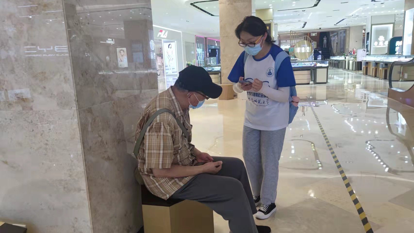 今日天气状况较差,为保证队员的安全和调研的效率,队伍决定临时调整调研路线,将调研的地点全部安排在了室内。此次走访依然按照原定计划两两组队,分别前往芜湖市的德胜广场、万达广场、苏宁广场、银泰百货和八佰伴广场进行问卷的分发与回收。