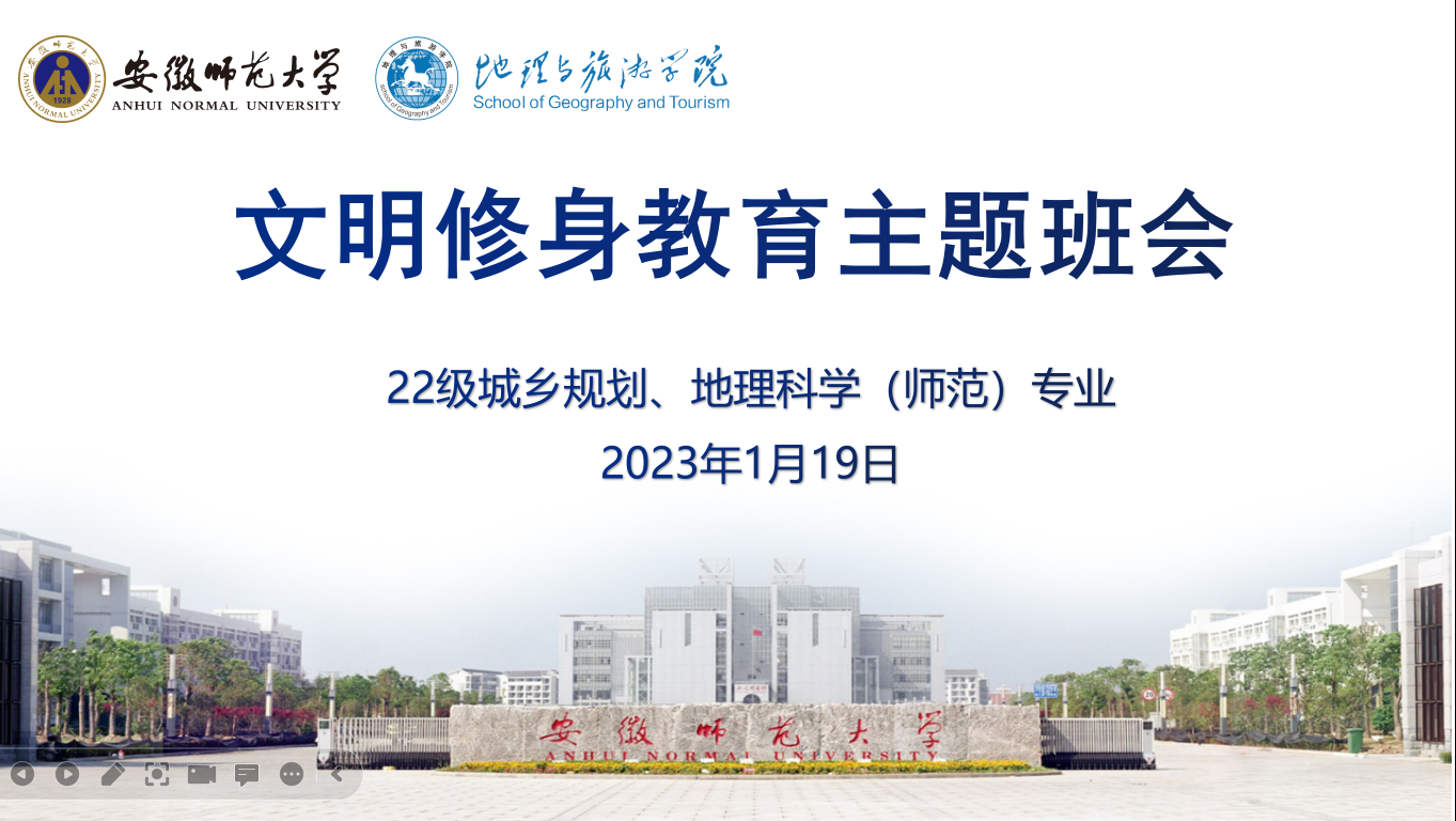 为深入学习宣传贯彻党的二十大精神,加强大学生文明修身教育,119日下午,辅导员操晶晶组织召开学习宣传贯彻党的二十大精神暨文明修身教育主题班会,2022城乡规划、地理科学(师范)专业全体同学参加。