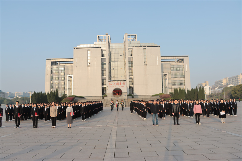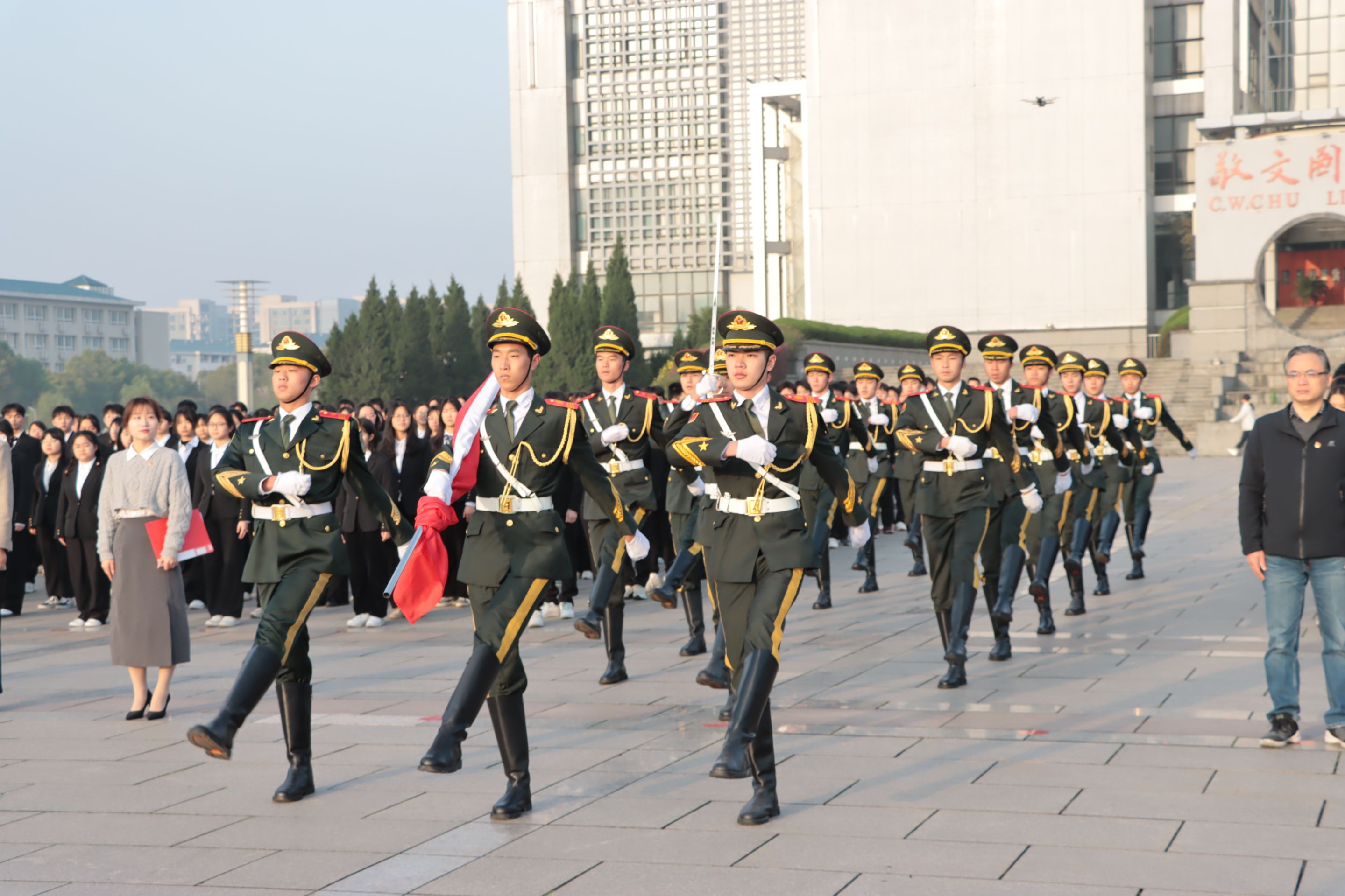 在敬文图书馆东广场举行了“学习二十大、奋进新征程”主题校园升旗仪式。女同做爱