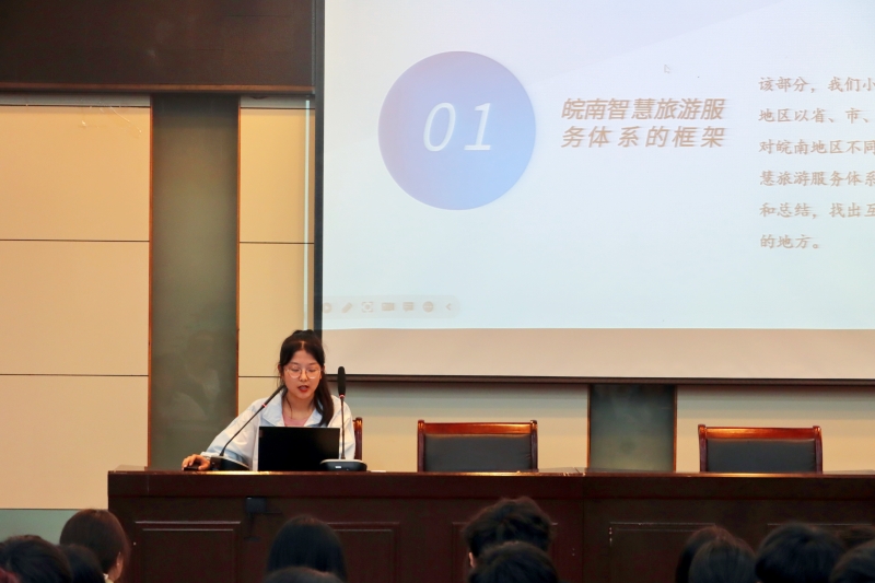 会上,安静龙同学从调研准备,调研过程和调研成果进行介绍,为同学们分享了旅游小企业经营特征调查与徽文化的旅游创新利用的调研经验。舒玉茹同学从模块整体概况、实习工作汇总、优秀作品分享、总结收获思考四个方面进行分享,她勉励学弟学妹们珍惜每一次出发的机会,用脚步丈量,以真心感受,不断求索真知。其他几位高年级同学也就自己调研的课题进行了认真地分享。
