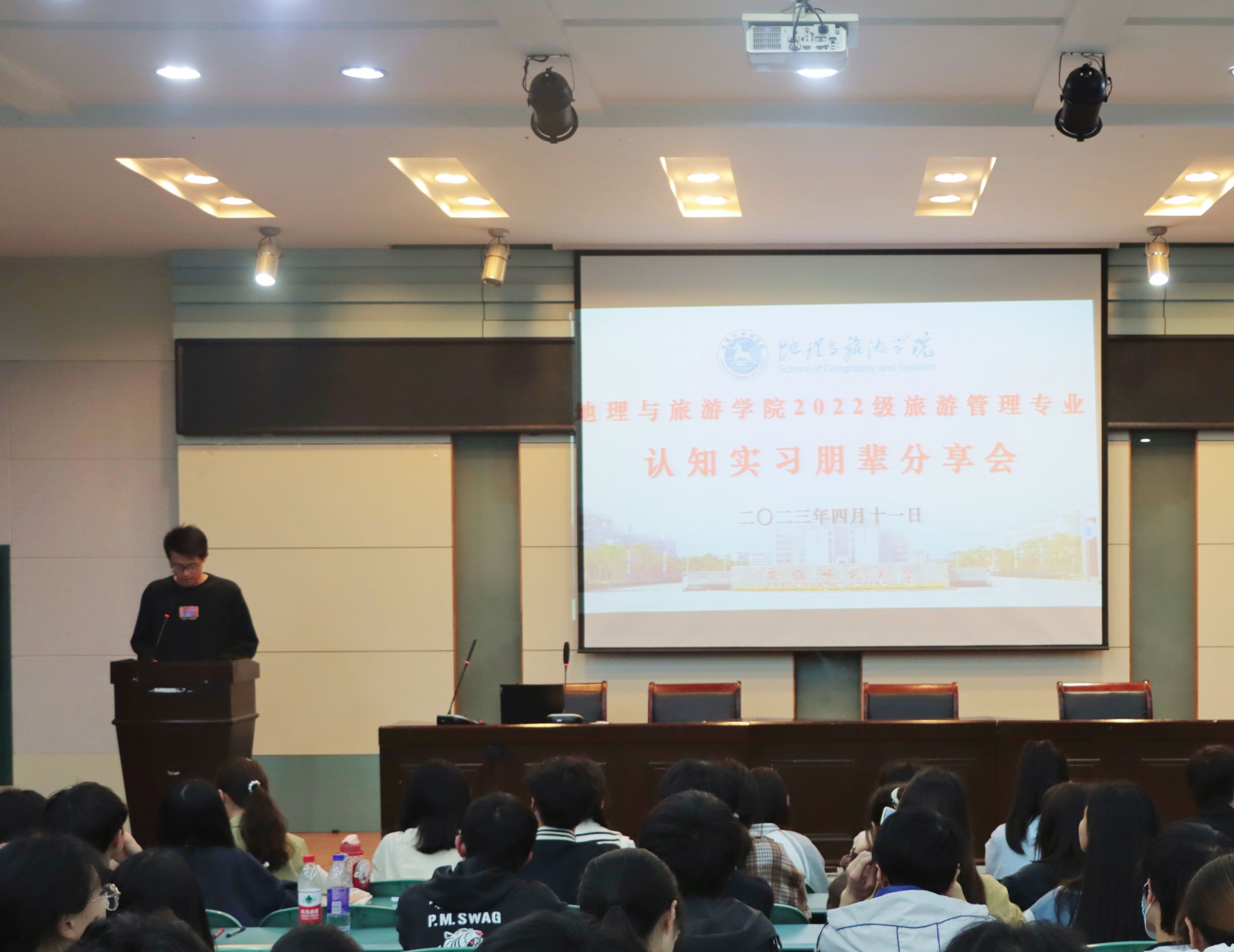 实验楼101报告厅开展了认知实习朋辈分享会。本次会议邀请了20级旅游管理专业的舒玉茹、马育荣,21级旅游管理专业的安静龙、袁秀云、胡心怡、周慧进行分享。会议由班长申楷辰主持,辅导员谢园老师及本次见习全体同学参加。