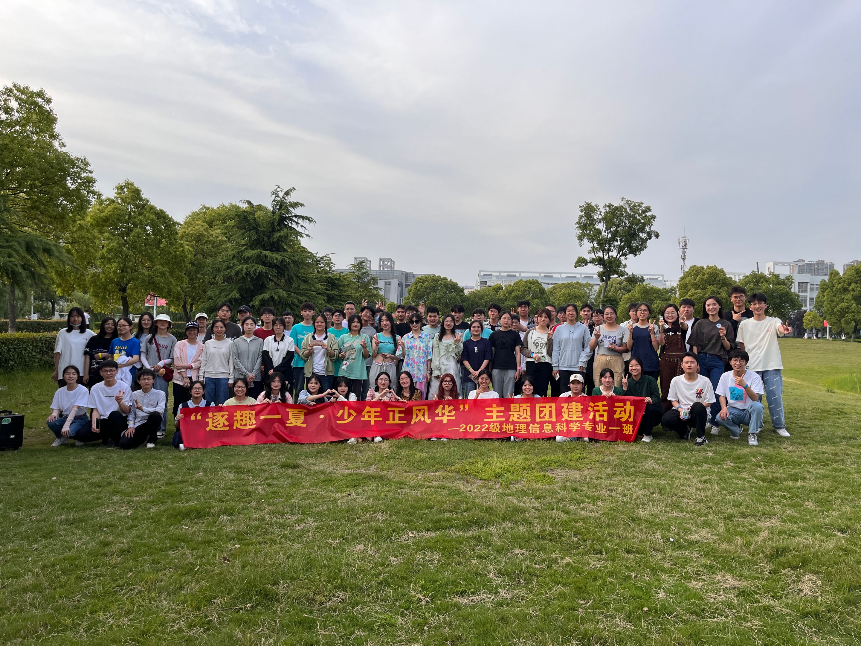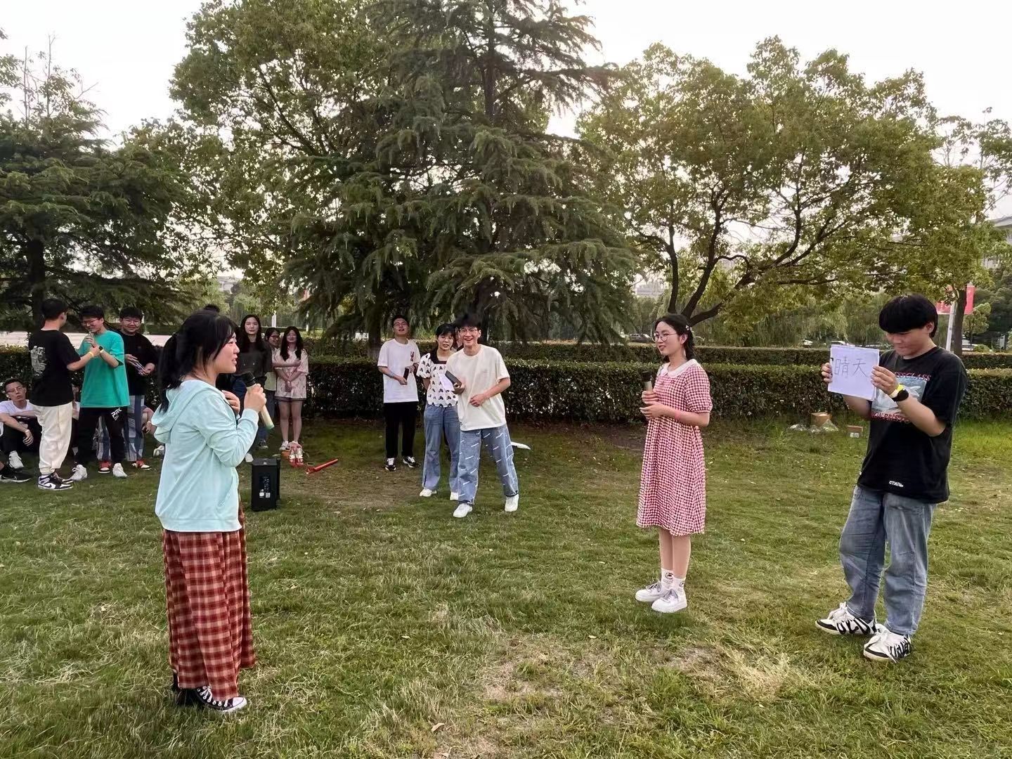 南侧草坪开展“学思想 跟党走”五四主题系列团日活动暨心理健康月户外素拓活动。活动由班长顾冉、团支书夏心雨主持,2022级地理信息科学一班全体同学,及辅导员陈祥云参与。