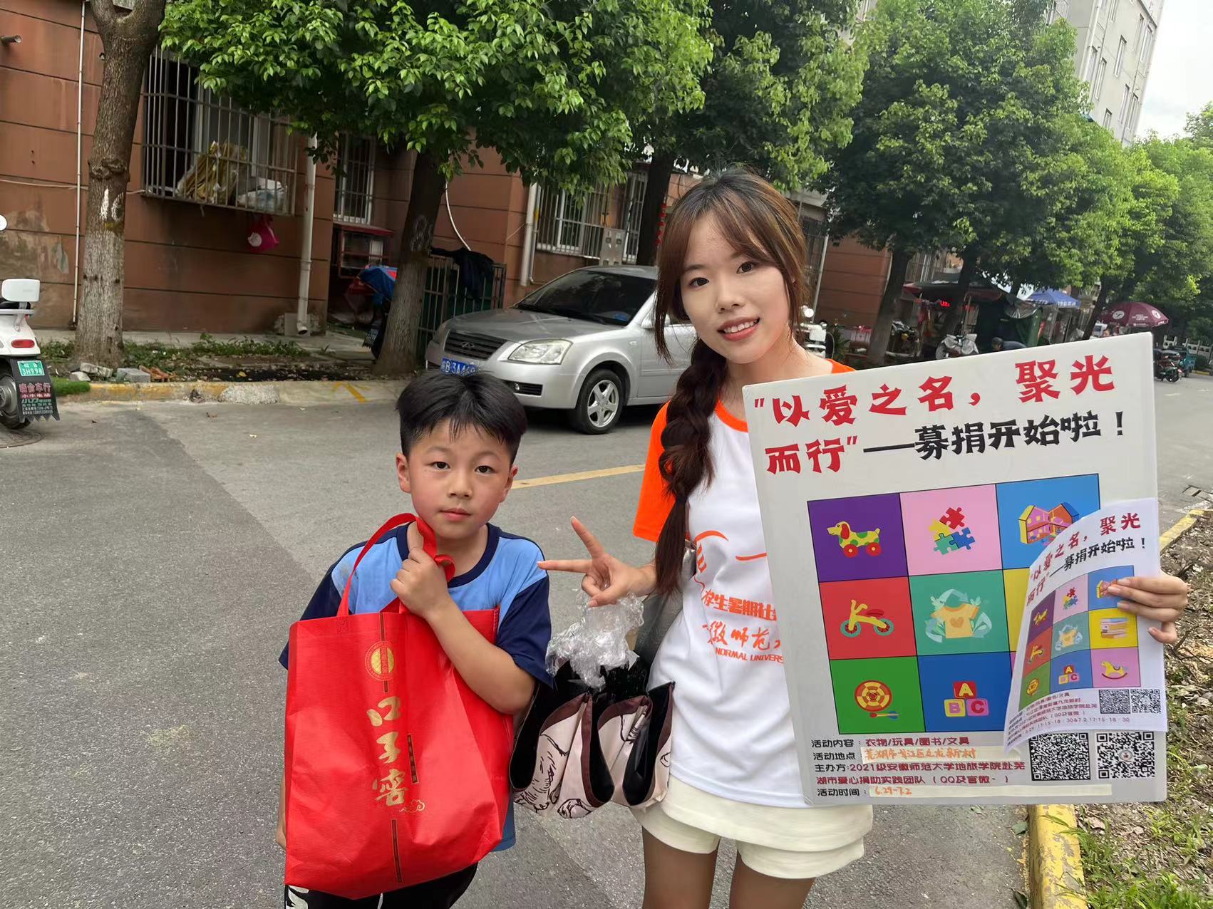 赴芜湖“以爱之名,聚光而行”爱心捐赠社会实践团队先后前往安徽师范大学花津校区与九龙新村,开展爱心捐赠活动、收集旧物活动,馈以温情、为爱助力、向善而行。