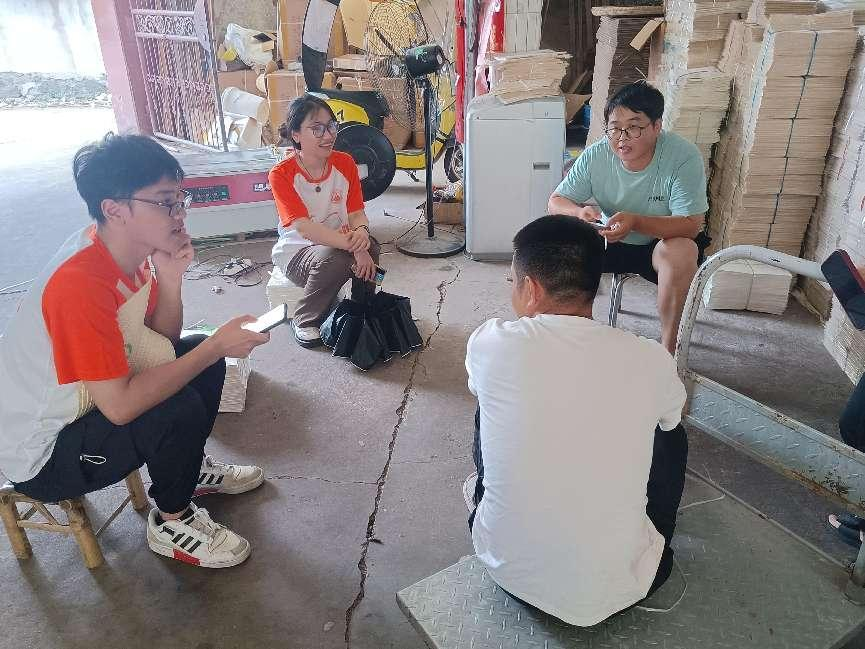 当地村民对团队的调研工作表示极大地支持,耐心听完并认真回答了团队成员提出的相关问题,也根据自身生活经验向团队讲述了村子发展状况和目前存在的难题。团队访谈到当地一位大学生返乡创业,做宣纸生产及抖音电商销售。他和成员回忆了自己向银行借贷投资宣纸创业的经历,过程辛苦但有回报,让大家进一步了解到当地乡村产业发展的相关政策支持等。