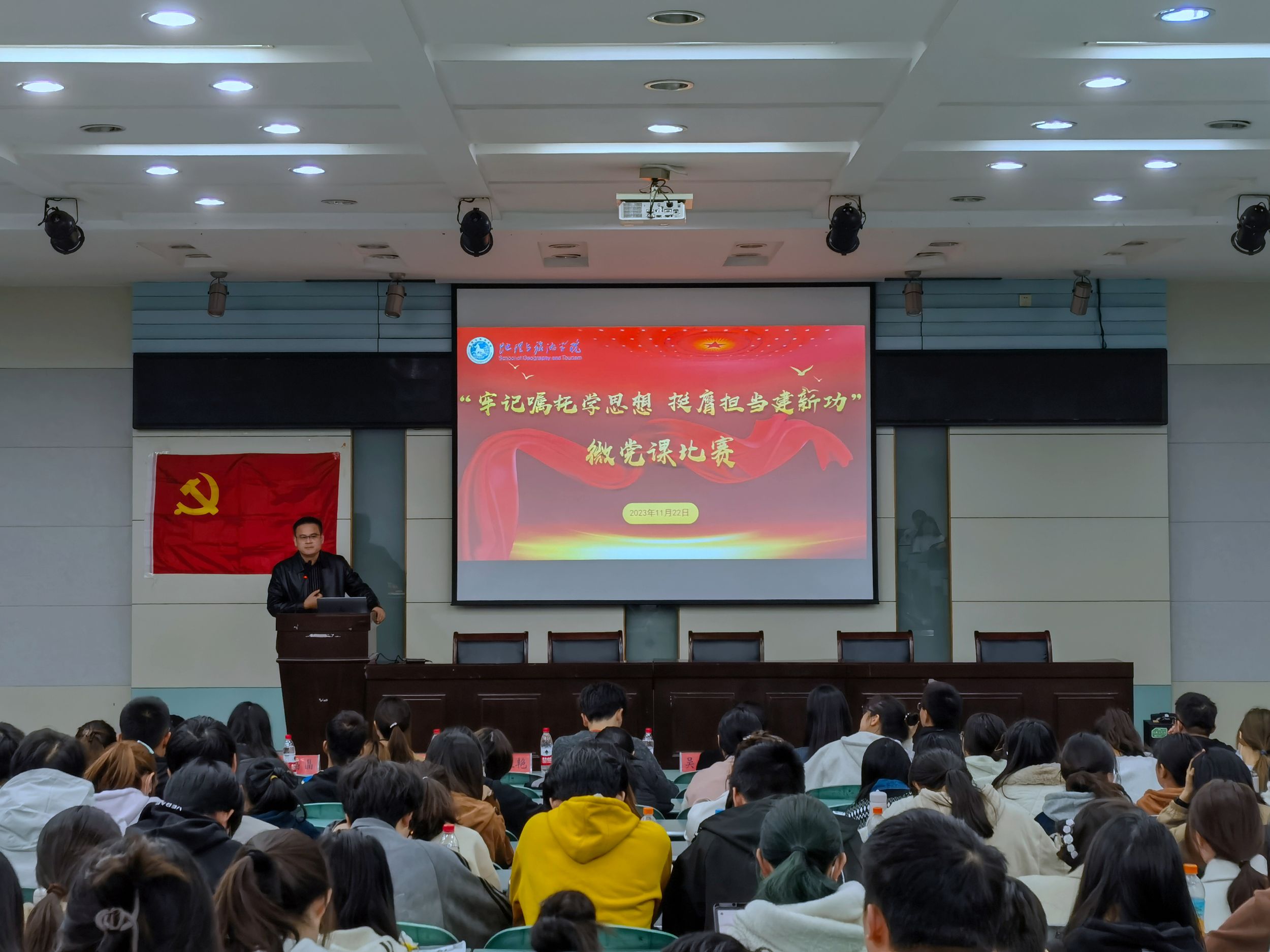 实验楼101报告厅开展“牢记嘱托学思想,挺膺担当建新功”微党课比赛。女同做爱