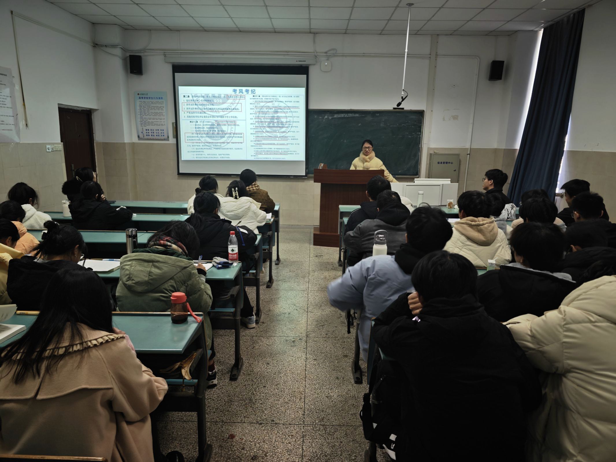 期末临近,操晶晶从学习习惯和考风考纪两个方面对同学们做出要求,提醒同学们要合理安排复习时间,养成良好的学习习惯,鼓励同学之间互相帮扶,并着重强调了考试纪律要求,通过解读《安徽师范大学考试纪律及违纪作弊处罚规定》引导学生自觉遵守考场纪律,营造诚信考试的良好氛围。