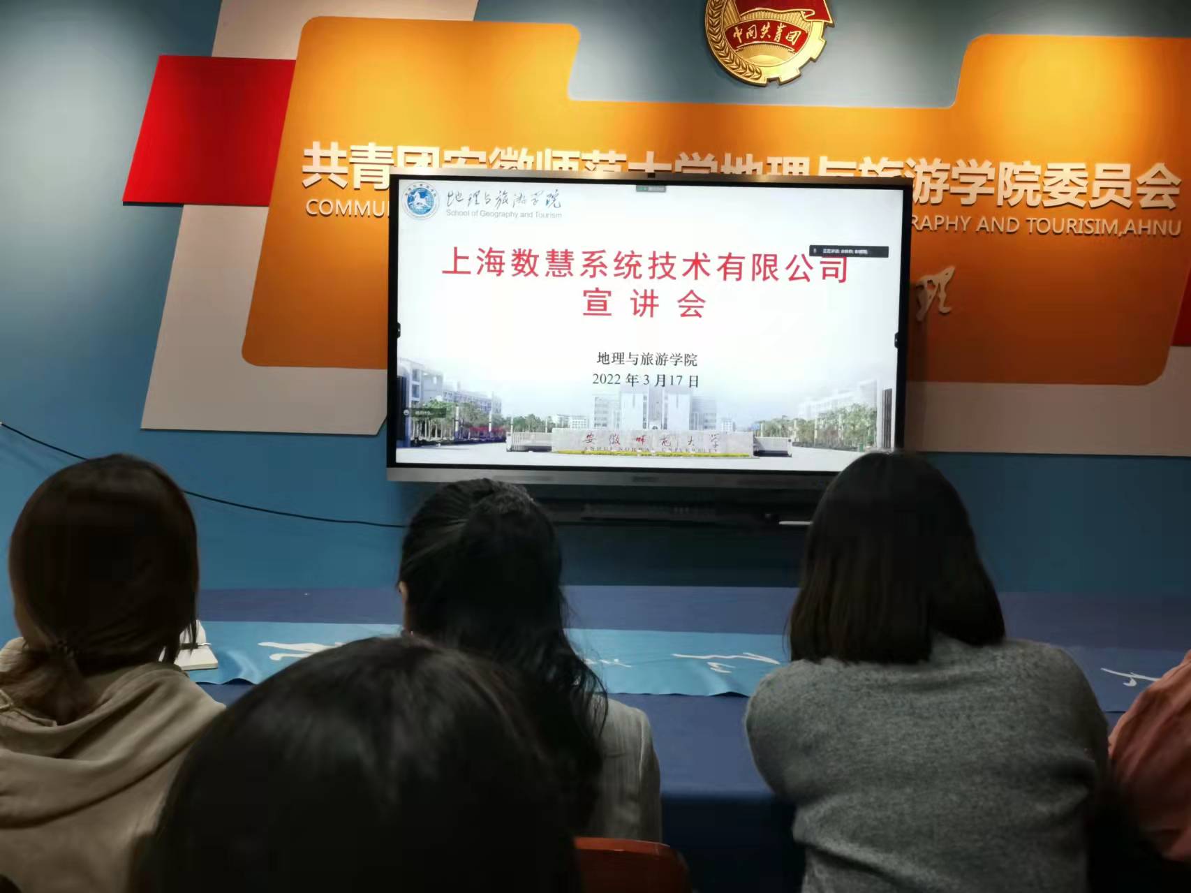 本网讯(孙雯杰 彭媛媛)2022年3月17日下午15:00,上海数慧系统技术有限公司应邀来女同做爱开展“线上+线下”招聘宣讲会,公司负责人使用腾讯会议宣讲,2018级地理信息科学专业学生线上线下参会,会议由毕业班辅导员彭媛媛主持。