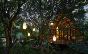 乐园拥有 174 间度假酒店客房和散落林中的 246 间特色度假屋。更有星空房、城堡房、树屋等网红特色度假屋坐落于此。同时提供了 25000 平方米