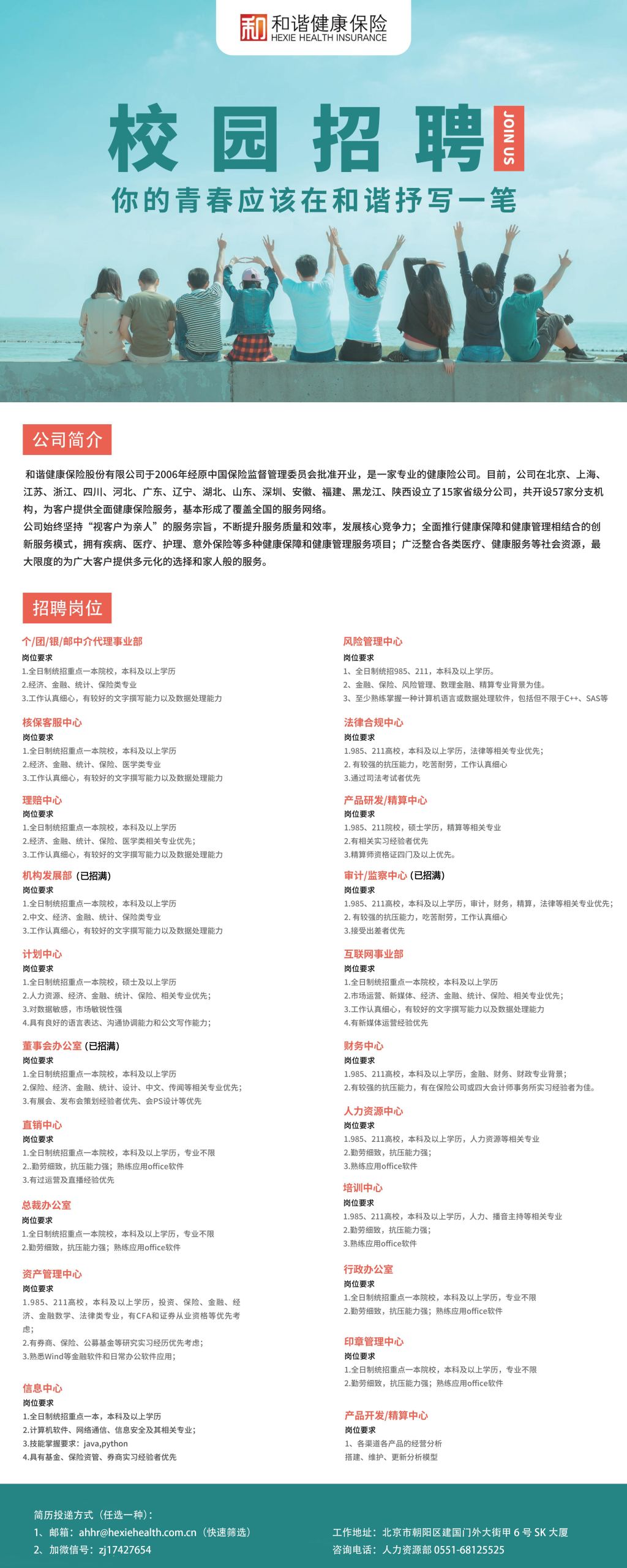 公司地址:合肥市长江西路 200 号置地投资广场 21 楼 和谐健康人力资源部